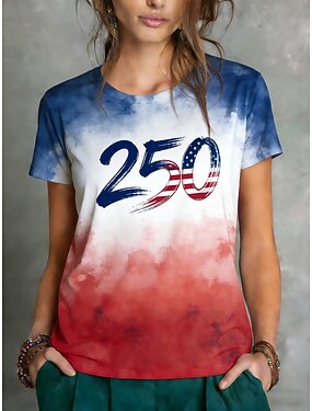 Dia da Independência Americana Mulheres Camiseta T-shirt Imprimir Gráfico à moda Clássico Casual Manga Curta Gola Redonda Tops regulares Diário Esportes Para Noite Azul Verão Primavera 250th