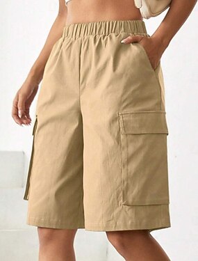 Mulheres Bermudas Bermuda Cargo Calção Shorts de verão Férias Moda Casual Diário Curto Cintura Média Bolsos Cintura elástica Secagem Rápida Macio Respirável Sem Elasticidade Streetwear Praia Feriado
