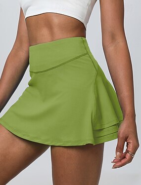 Mulheres Cor Sólida Saia casual Saias de tênis com shorts Saia Esportiva Bolsos Cintura Alta Elástico Redutor de Suor Respirável Tênis Golfe Pickleball Saias Moletom Preto Branco Rosa claro Roupas de