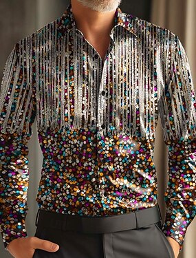 Carnaval Homens Colorido Carnaval Máscara com penas Camisa Social Blusa de cetim Saia Manga Longa Moda Casual Festa Feriado Verão Primavera Outono Aberto para a Lateral Impressão 3D Camisas de botões