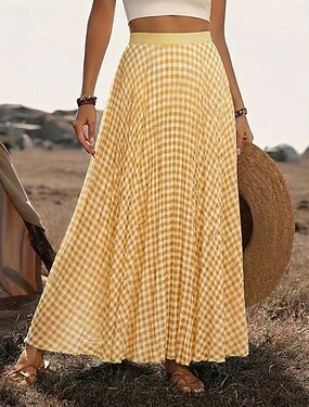 Mulheres Moda Casual Médio Cintura Alta Saias Houndstooth Franzido Sem Elasticidade Micro-Elástica Diário Rua Café Outono
