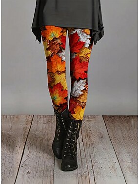 Mulheres Leggings Leggings aconchegantes Férias Casual Comprimento total Cintura Alta Gráfico Folha Estampado Conforto Confortável Com Stretch Casual Diário Férias Laranja Primavera Outono Magro