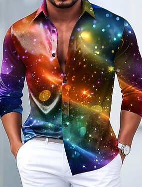 Natal Homens Purpurina Brilhante feliz Ano Novo Luz de Natal Camisa Social Blusa de cetim Saia Manga Longa Moda Casual Festa Feriado Verão Primavera Outono Aberto para a Lateral Impressão 3D Camisas