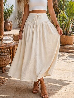 Mulheres Saia de férias Boêmia Vintage Casual Longo Cintura Média Saias fluido Sem Elasticidade Adamascado Verão