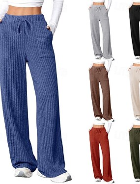 Mulheres Atrevido chinês Férias Roupa de rua Casual Comprimento total Cintura Média Côr Sólida Com Cordão Confortável Conforto Com Stretch Diário Ao ar livre Rua Azul Marron Escuro Cinza Preto Outono