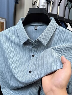 Homens Saia Camisa não de ferro Tiras verticais O negócio Trabalho Preto Verde Claro Vermelho Azul Marinho Escuro Manga Curta Aberto para a Lateral Verão Primavera Roupa Botões