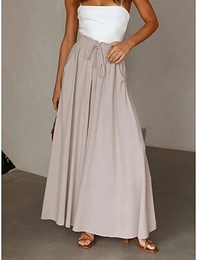 Mulheres Calças Calça casual Calça verão Calças de praia Férias Moda Casual Diário Comprimento total Cintura Alta Côr Sólida Tecido Com Cordão Perna larga Cintura elástica Conforto Macio Respirável