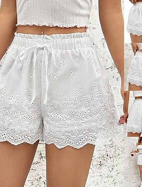 Mulheres Calção Shorts de verão Shorts de praia Shorts casuais Férias Moda Casual Diário Curto Cintura Alta Côr Sólida Tecido Com Cordão Patchwork Cintura elástica Conforto Macio Respirável