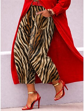 Mulheres Calças Calças largas Casual Diário Chino Comprimento total Cintura Alta Multi-Côr Geometria Bolsos Estampado Corte alto Confortável Sem Elasticidade Casual / Diário Azul Laranja Avermelhado