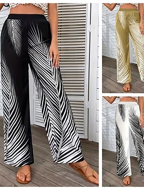 Mulheres Calças cônicas chinês Férias Roupa de rua Casual Comprimento total Cintura Média Gráfico Cintura elástica Estampado Confortável Micro-Elástica Diário Ao ar livre Rua Marron Escuro Branco
