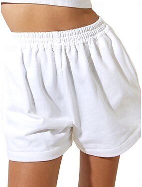 Mulheres Calção Shorts de verão Moda Roupa de rua Básico Curto Cintura Alta Tecido Com Cordão Bolsos Cintura elástica Respirabilidade Confortável Micro-Elástica Diário Férias Rua Preto Branco Amêndoa