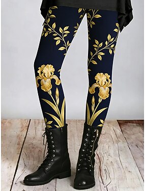 Mulheres Calças Leggings Leggings aconchegantes Roupa de rua Casual Comprimento total Natural Floral Cintura elástica Imprimir Confortável Exterior Ao ar livre Streetwear Férias Preto Amarelo Azul