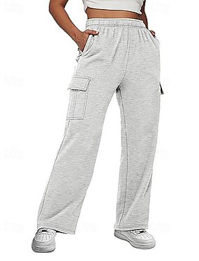 Mulheres Perna larga Calças Casual Diário Longas Tecido Bolsos laterais Cintura elástica Respirabilidade Confortável Sem Elasticidade Para Noite Final de semana Preto Rosa Cinza Claro Cinzento Escuro