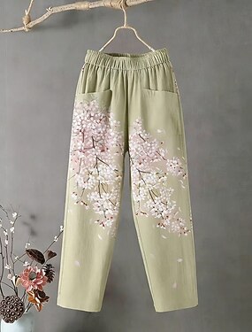Mulheres Calça casual Calças Reto Férias Moda Roupa de rua Mimolet Cintura Média Floral Gráfico Bolsos Cintura elástica Imprimir Confortável Conforto Respirabilidade Sem Elasticidade Diário Ao ar