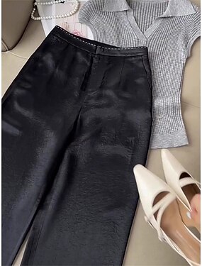 Mulheres Perna larga chinês Elegante Férias Moda Comprimento total Cintura Alta Tecido Bolsos Cintura elástica Confortável Conforto Macio Micro-Elástica Diário Ao ar livre O negócio Vinho Preto