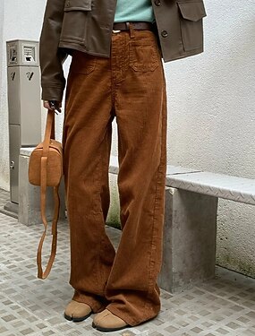 Mulheres Calças Calças de Veludo Calças largas Calça casual Férias Moda Roupa de rua Comprimento total Cintura Alta Tecido Bolsos Perna larga Conforto Macio Confortável Sem Elasticidade Ao ar livre