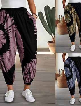 Mulheres chinês Calças Harem Férias Moda Roupa de rua Mimolet Cintura Alta Gráfico Tintura Tie Dye Bolsos Cintura elástica Imprimir Confortável Conforto Macio Com Stretch Ao ar livre Rua Rosa cáqui