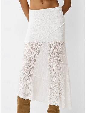 Mulheres Elegante Moda Casual Médio Cintura Média Saias Tecido Renda Hem irregular Micro-Elástica Diário Férias Branco Verão
