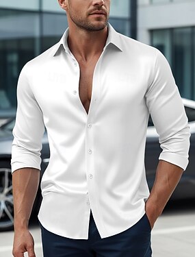 Homens Camisa Social Blusa de cetim Saia Camisa casual camisa de botão Camisa de formatura Tecido Casual Festa Azul Claro Preto Branco Vinho Manga Longa Lapela Todas as Estações Roupa