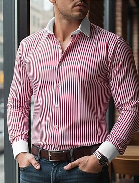 Homens Saia Camisa não de ferro Camisa listrada Listras e xadrez Casamento Escritório e Carreira Preto Branco Caqui Cinzento Claro Manga Longa Aberto para a Lateral Todas as Estações Roupa