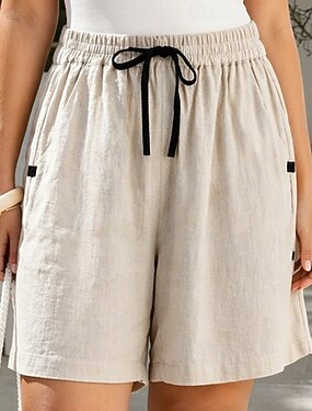 Mulheres Bermudas Shorts de algodão e linho Calção Shorts de verão Férias Moda Casual Diário Comprimento do joelho Cintura Média Côr Sólida Tecido Com Cordão Bolsos Cintura elástica Conforto Secagem