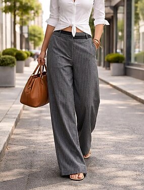 Mulheres Perna larga Social chinês Calça verão Elegante Vintage Moda Comprimento total Cintura Baixa Listrado Conforto Micro-Elástica Casual Diário Streetwear Cinzento Verão Primavera Ajuste Largo
