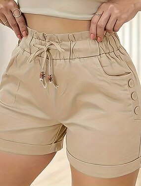 Mulheres Bermudas chinês Calção 100% Algodão Férias Básico Curto Cintura Média Conforto Sem Elasticidade Férias Formal Rua Verde Primavera Preto Vermelho Rosa Café Verão Primavera