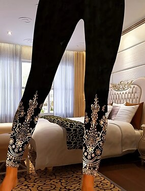 Mulheres Calças Leggings Leggings aconchegantes Casual Boho Comprimento total Cintura Alta Flor Cintura elástica Imprimir Respirabilidade Confortável Com Stretch Férias Rua Roupa Diária Preto Verão