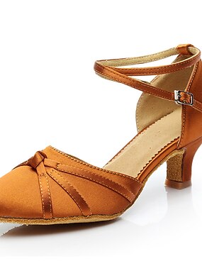 sapatos de dança latina de cetim feminino | saltos de salão abertos com tiras cruzadas e fecho de fivela – ideais para salsa, tango e dança de performance