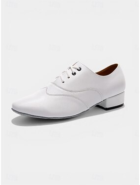 Sapatos de dança de salão masculinos brancos, com cadarço e sola macia, ideais para praticar danças latinas, tango e salsa. &apresentação em recinto fechado