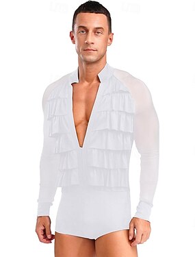 Dança de Salão Vestido Pregas Cor Pura Recortes Mulheres Festa Treino Espetáculo Manga Longa Elastano Fibra Sintética