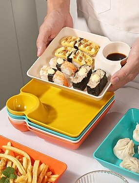 Conjunto de 4 pratos separados para molho, ideais para servir chips e salsa, travessas para vegetais com suporte para molho, perfeitos para buffets, festas em família, aperitivos, sushi, tacos, salsa,