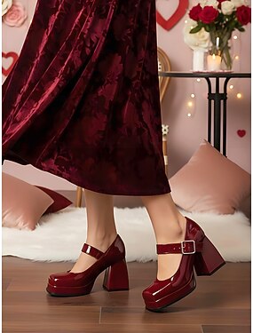 Sapatos Mary Jane femininos com salto bloco, inspirados no estilo vintage dos anos 50 e com detalhes em pérola – calçado retrô elegante para festas, eventos formais e uso diário.