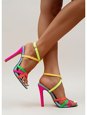 Sandálias femininas vibrantes em blocos de cores neon - stilettos sensuais de salto alto com tiras e ajuste no tornozelo, perfeitas para festas noturnas e eventos de gala em cruzeiros. &eventos de