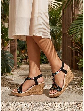 Sandálias femininas de salto baixo com estampa floral - perfeitas para eventos noturnos em resorts.