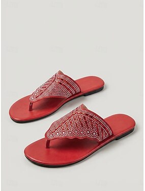 sandálias rasteiras femininas com strass floral - sapatos confortáveis de verão casuais com tiras em T para uso diário e encontros românticos durante o dia