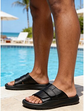Sandálias masculinas de couro sintético – modernas e confortáveis, perfeitas para resorts, piscina e atividades ao ar livre.