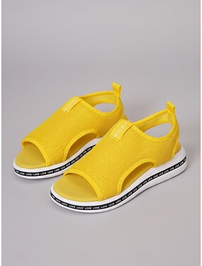 Sandálias femininas amarelas leves e rasteiras – sandálias de verão respiráveis em malha, ideais para caminhadas, viagens e uso casual no verão.