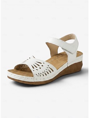 Sandálias plataforma femininas brancas com recortes – calçados casuais respiráveis para caminhadas, viagens, férias, festas no jardim e uso diário.