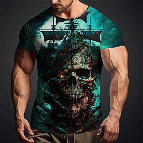 Homens Gráfico Navio Pirata Assombrado Caveiras Camiseta Manga Curta Camiseta Impressão 3D Gola Redonda Camisa Diário Designer Retro Vintage Esportes Feriado Para Noite Azul Azul Céu Vermelho