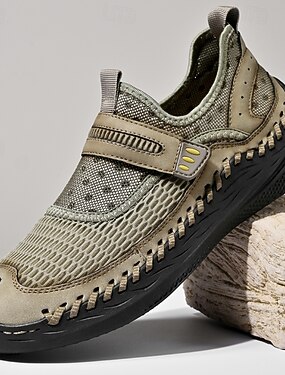 Sapatos masculinos slip-on respiráveis em couro sintético e malha – calçado leve e confortável para o verão, ideal para atividades casuais, em resorts e ao ar livre.