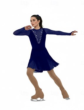 Vestidos para Patinação Artística Mulheres Patinação no Gelo Vestidos Azul Escuro Patchwork Sem costas Com Stretch Treino Competição Roupa para Patinação Clássico Cristal / Strass Manga Longa