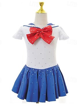 Vestidos para Patinação Artística Para Meninas Patinação no Gelo Vestidos Azul marinho Branco Vermelho Patchwork Sem costas Com Stretch Treino Competição Roupa para Patinação Clássico Cristal / Strass