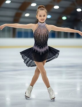 Vestidos para Patinação Artística Mulheres Para Meninas Patinação no Gelo Vestidos Preto Patchwork Thumbhole Com Transparência Elasticidade Alta Treino Competição Roupa para Patinação Clássico