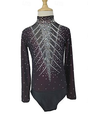 Top de patinação artística Homens Para Meninos Patinação no Gelo Tops Preto Patchwork Elastano Elasticidade Alta Treino Profissional Competição Roupa para Patinação Clássico Cristal / Strass Manga