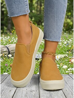Tênis feminino amarelo sem cadarço – calçado casual confortável para atividades ao ar livre, viagens, caminhadas e uso diário.