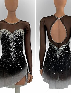 Vestidos para Patinação Artística Mulheres Para Meninas Patinação no Gelo Vestidos Preto Patchwork Sem costas Com Transparência Elastano Com Stretch Treino Ensaio / Prática Profissional Roupa para