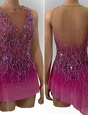 Vestidos para Patinação Artística Mulheres Para Meninas Patinação no Gelo Vestidos Rouge-de-rosa Roxo Roxo Escuro Com Transparência Elastano Elasticidade Alta Competição Roupa para Patinação