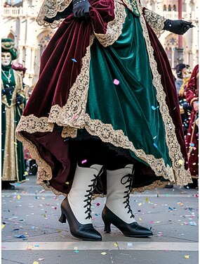 Botas eduardianas femininas de amarrar, dos anos 1900-1910 - botas estilo vitoriano de salto baixo e dois tons para festas à fantasia, chás vintage e reconstituições históricas