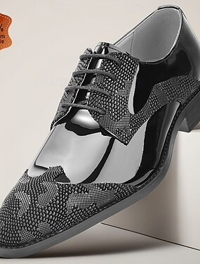 sapatos sociais masculinos de couro sintético marrom com cadarço e detalhes em tecido, estilo formal clássico, confortáveis para casamentos e eventos empresariais